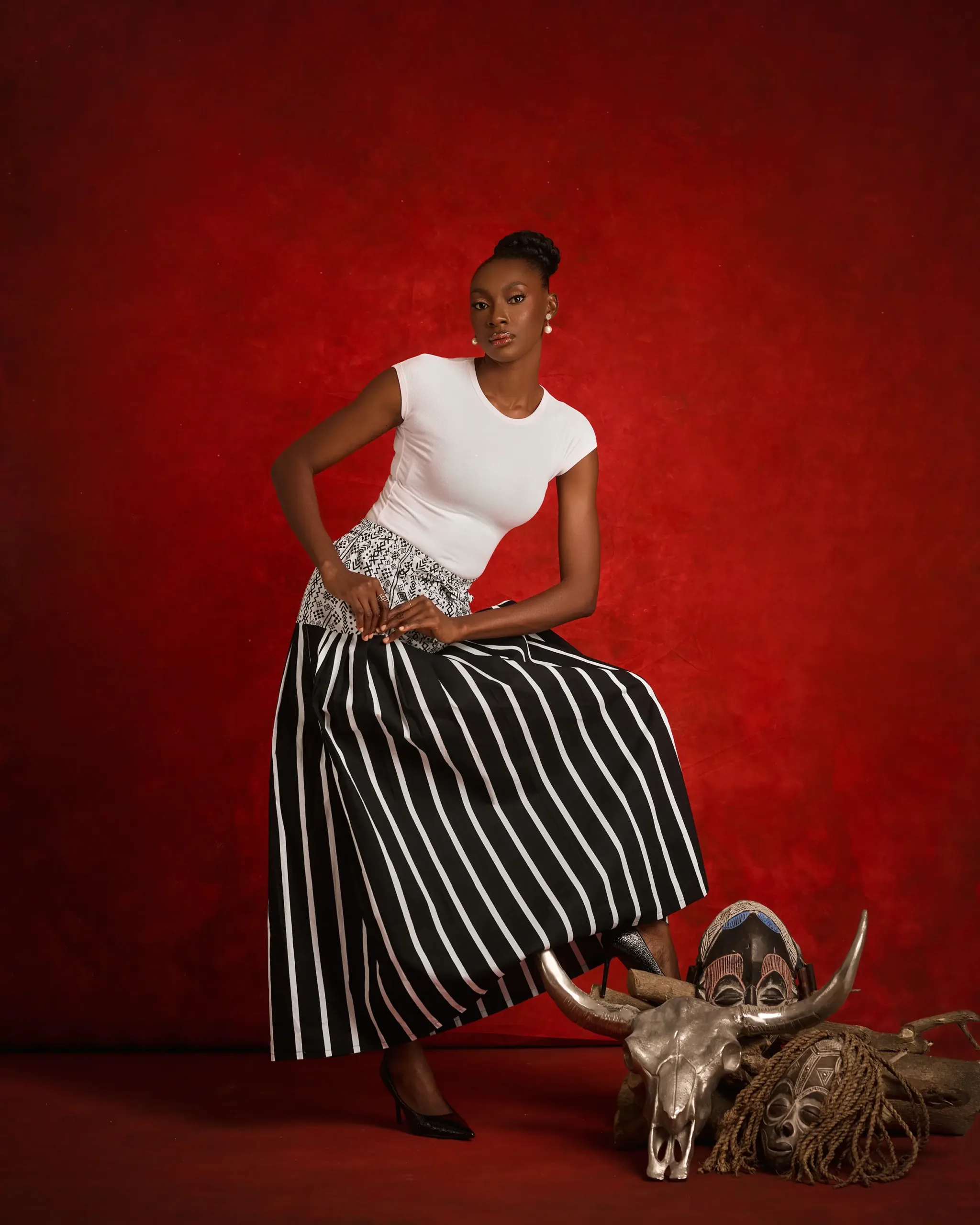 Oníkan draws its name from the Yoruba phrase meaning “the one who possesses strength like metal.” Inspired by the resilience of iron and the spirit of Lagos’ historic Onikan district, this aso eke design embodies toughness, adaptability, and heritage. Its patterns symbolize endurance and cultural pride, echoing the bustling energy of marketplaces and the timeless beauty of traditional artistry. Wearing Oníkan is more than fashion; it is a celebration of inner strength and a tribute to the unbreakable spirit of Africa’s people.